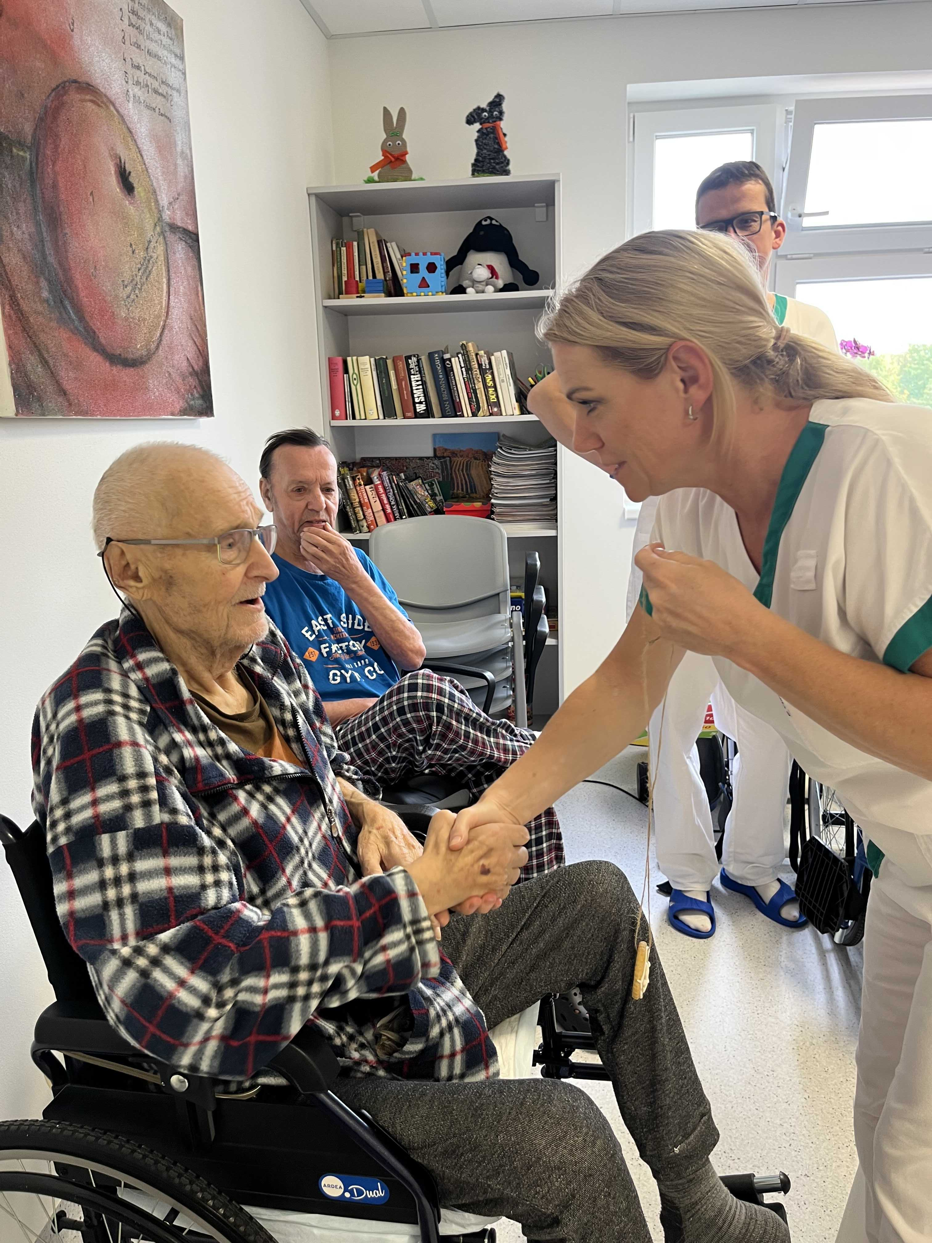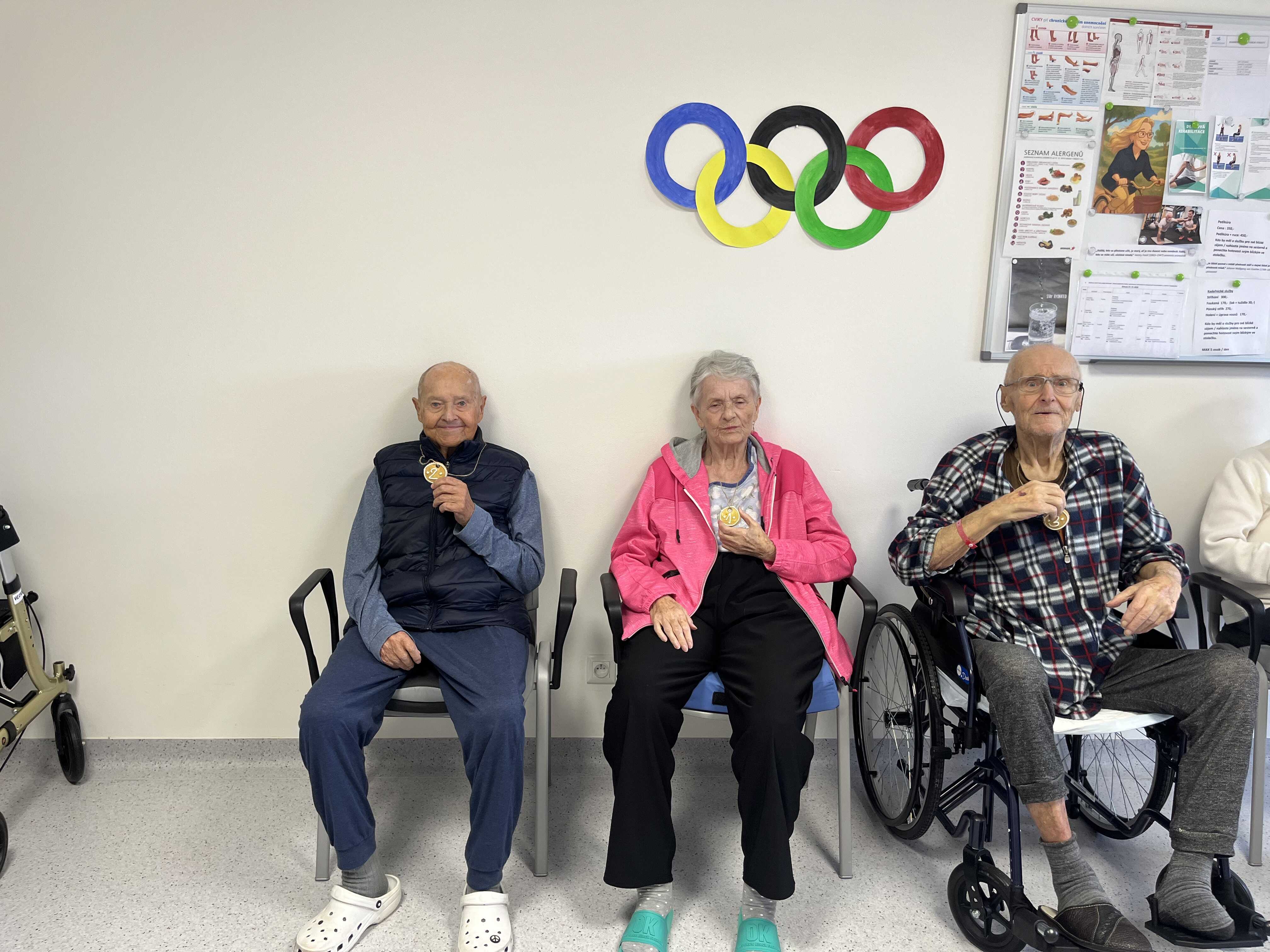 Zapojili jsme i imobilní pacienty přímo na pokojích, aby si den mohl užít opravdu každý. Nechyběly symbolické medaile a příjemná atmosféra, která dala oslavě ten správný rytmus. Podívejte se na několik momentek z průběhu odpoledne.