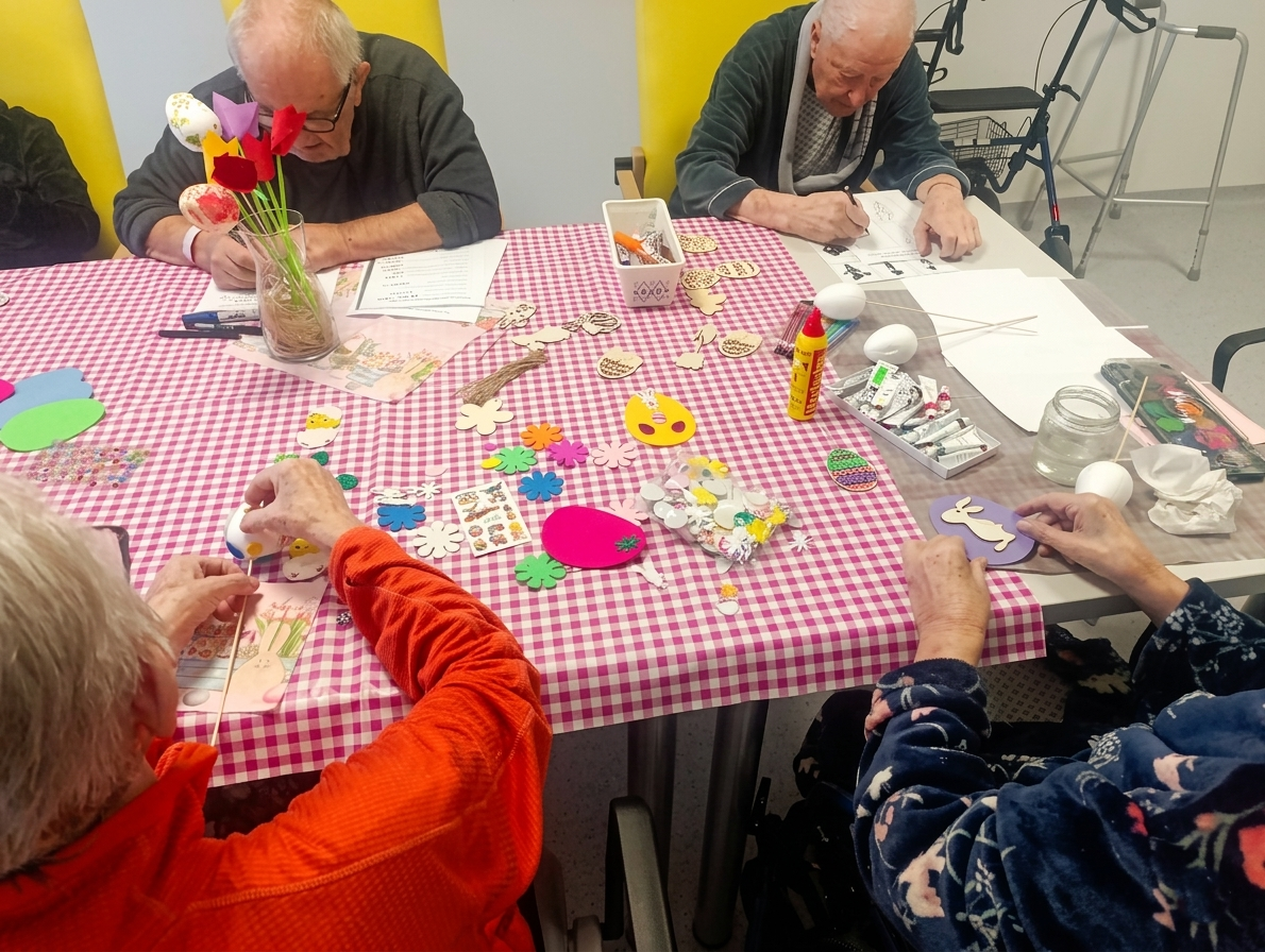 Poslední dny u nás vládla tvůrčí atmosféra a jarní přípravy byly v plném proudu. Naši pacienti se s chutí pustili v rámci aktivizací do výroby velikonočních dekorací, které teď zdobí naše zařízení.