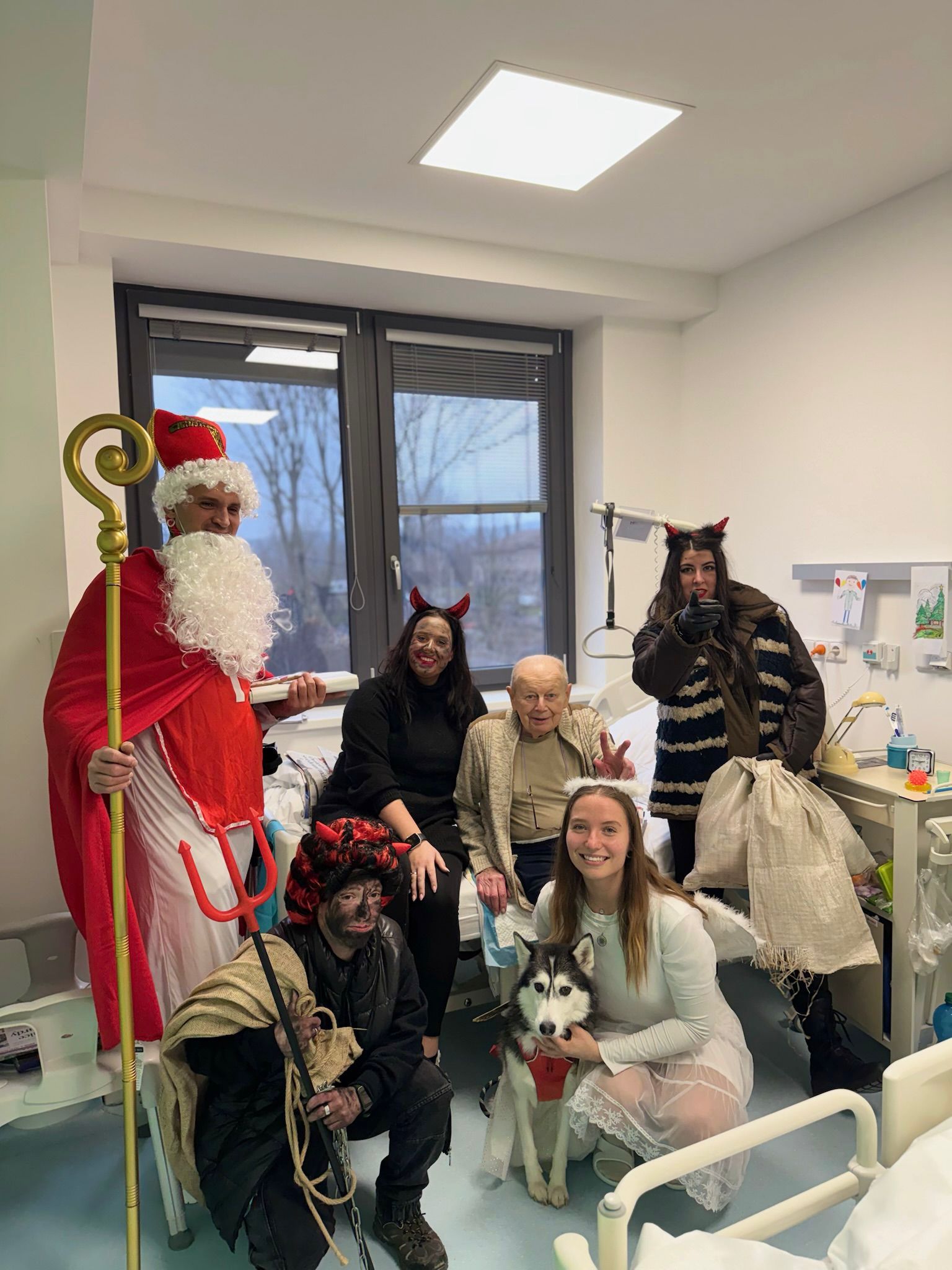 Mikulášská nadílka ve Vividus Medical. I letos u nás proběhla tradiční Mikulášská nadílka. Personál z oddělení A a oddělení B se spojil a společně připravil našim pacientům milé předvánoční překvapení. Mikuláš, anděl, čert a dokonce i náš čtyřnohý andělský asistent navštívili jednotlivá oddělení, předali drobné dárky a přinesli úsměv i dobrou náladu. Pacienti si tuto malou slavnost užili a atmosféra byla krásně sváteční.